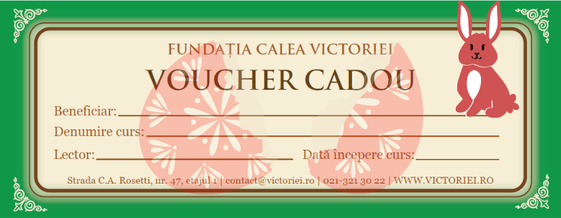 Când alegi să faci cadou un voucher pentru cursuri sau evenimente online, nu e nevoie să alergi prin tot oraşul ca să-l cumperi. Cercetează lista de idei de cadouri de Paşte pe care ţi-am pregătit-o şi alege de acolo ce te inspiră. Sunt domenii atât de variate: istoria artei, mindfulness, fotografie, muzică, folclor, filosofie, istoria românilor, literatură, storytelling, diplomaţie şi tehnici NLP încât ştii sigur că vei găsi un cadou pe gustul fiecărui prieten sau membru al familiei.