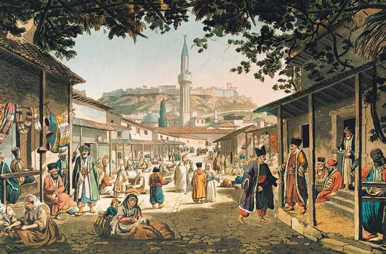 Imagine: Bazarul din Atena, pictură de Edward Dodwell