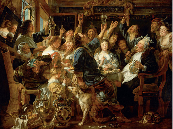 Sursa imagine sus – https://commons.wikimedia.org/wiki/File:Jacob_Jordaens_-_The_Feast_of_the_Bean_King_-_Google_Art_Project.jpg