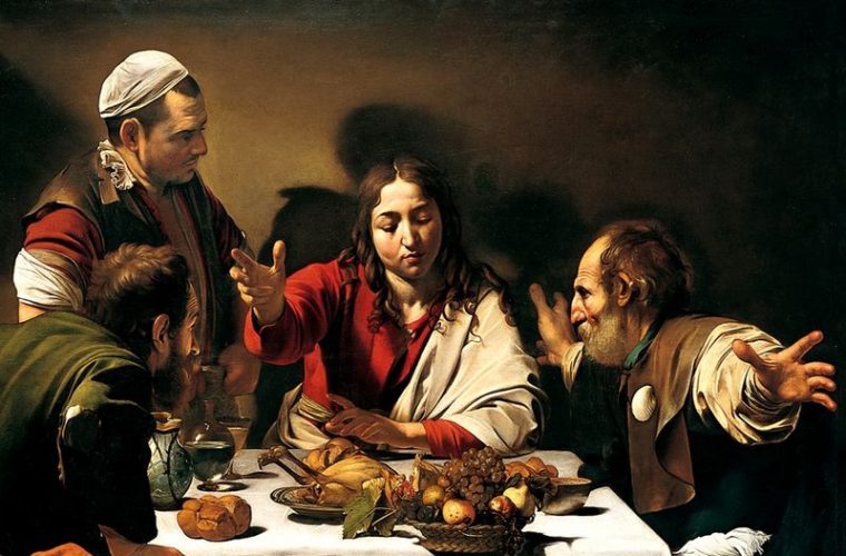 imagine sus: Cina de la Emmaus, Caravaggio, 1601