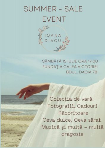 Vă aşteptăm sâmbătă, 15 iulie, de la ora 17:00, la sărbătoarea feminităţii şi a verii, să ne bucurăm împreună admirând şi probând colecţiile create de graţioasa Ioana Diacu, prietena Fundaţiei, pe care am descoperit-o de ceva vreme. Şi după cum v-am obişnuit, de fiecare data când descoperim ceva frumos ne place să împărtăşim cu voi, motiv pentru care vă invităm să ne bucurăm de texturi, culori, forme, feminitate şi gratie, în compania creatoarei care aduce la sediul nostru ţinute de vară vaporoase şi atemporale, din materiale naturale şi lejere.
