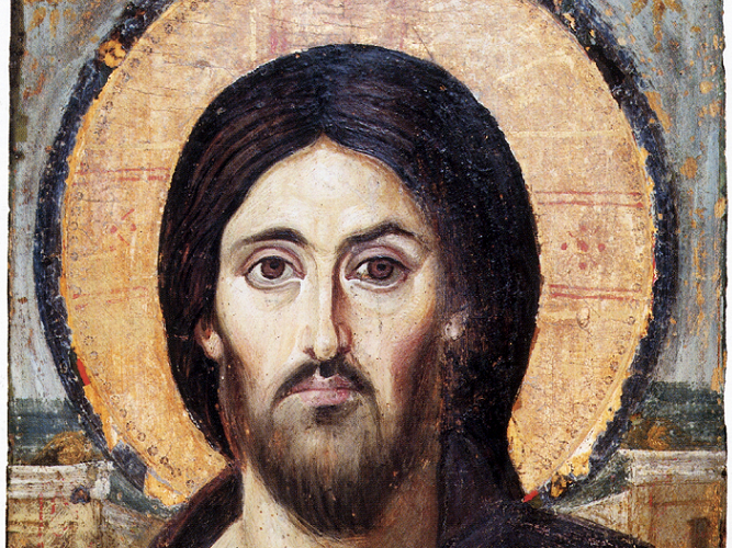 Imagine: https://en.wikipedia.org/wiki/Christ_Pantocrator_(Sinai)
