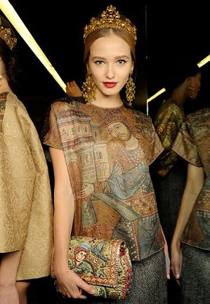 În primăvara acestui an, minunatele mozaicuri bizantine au ajuns pe podiumurile de modă, colecţia Dolce & Gabbana aducând un omagiu strălucirii de mult apuse a evului mediu. Dincolo de fastul şi eleganţa rochiilor şi accesoriilor, prezentarea a readus în în discuţie legătura dintre modă şi artă.