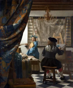 Johannes Vermeer, Arta picturii, c. 1665, ulei pe pânză, 120 x 100 cm, Kunsthistorisches Museum, Viena