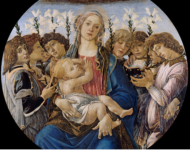 Imagine sus – https://commons.wikimedia.org/wiki/File:Sandro_Botticelli_-_Mary_with_the_Child_and_Singing_Angels_-_Google_Art_Project.jpg