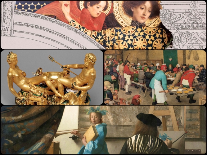 Amatorii de artă flamandă, sigur, se vor bucura de ampla colecţie dedicată lui Pieter Bruegel cel Bătrân. Vânătorii în zăpadă, Turnul Babel, Lupta dintre Carnaval şi Post, Dansul ţăranilor sau Nunta de la ţară sunt câteva dintre tablourile care ne îndeamnă să medităm asupra mentalităţilor secolului al XVI-lea, să decoperim proverbe flamande demult uitate sau posibile reacţii în faţa Contrareformei catolice din Ţările de Jos. În cadrul atelierului vom discuta despre preocupările intelectuale ale curţii imperiale de la Praga sau Viena în vremea împăraţilor Maximilian II şi Rudolf II şi vom descoperi Anotimpurile lui Arcimboldo. Nu vom rata nici cea mai cunoscută piesă de orfevrărie de la Viena – Solniţa imaginată de Benvenuto Cellini pentru regele Franţei, Francisc I. Cum a ajuns în colecţiile vieneze? O să dezlegăm misterul împreună.