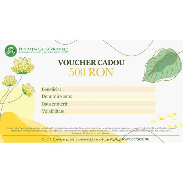 Acest produs poate fi cumpărat şi folosit ulterior ca voucher de discount. Poate fi trimis pe emailul persoanei căreia vrei să i-l oferi sau poate fi descărcat şi printat.