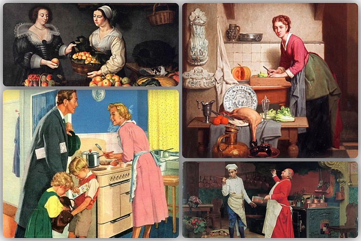 Sursă foto: Joachim Beuckelaer (c 1533–1575), The Four Elements: Fire. A Kitchen Scene with Christ in the House of Martha and Mary in the Background (1570), oil on canvas, 157.5 x 215.5 cm, The National Gallery, London. Wikimedia Commons.