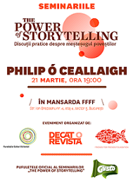 Va invitam in 21 martie la al doilea Seminar The Power of Storytelling, o discuţie despre meşteşugul poveştilor cu scriitorul Philip Ó Ceallaigh. Evenimentul va avea loc în mansarda FFFF şi începe la ora 19:00 – intrarea se face de la 18 :30. Plata se face in avans, dupa inscrierea pe mail la [email protected], avind in vedere ca locurile sint limitate.