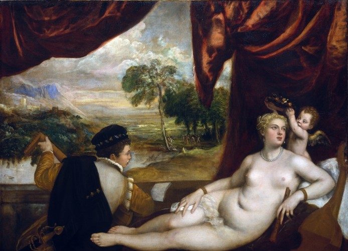 De la Amorul sacru şi amorul profan (1514) şi până la cele şase tablouri din seria Venus şi muzicianul (1545 – 1570), trecând prin Venus din Urbino (1538), Tiţian consacră în istoria artei o tematică ce respiră senzualitate şi cultură, amalgamând concepte filozofice filtrate de interpretări locale, idei artistice şi mai ales o imensă pasiune pentru culoare, lumină, picturalitate.